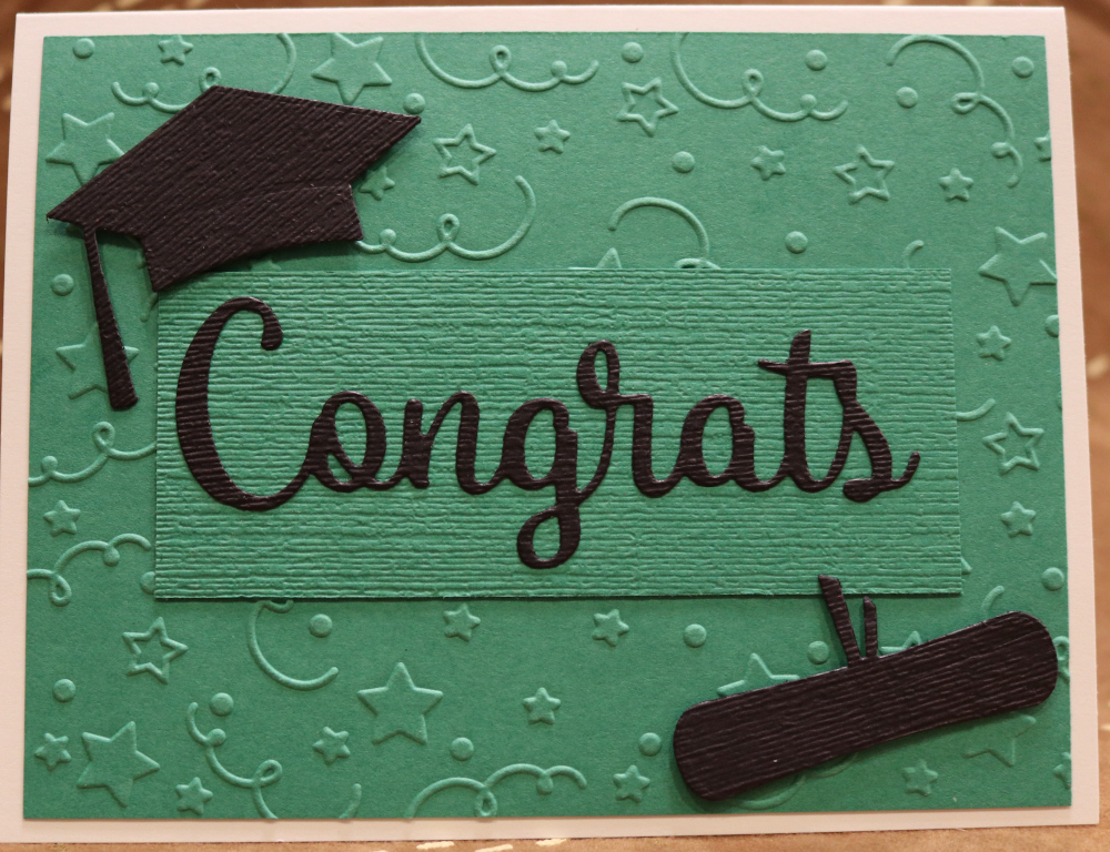 White, Green and Black Papers - Confetti Embossing Folder - Hat with tassel and diploma