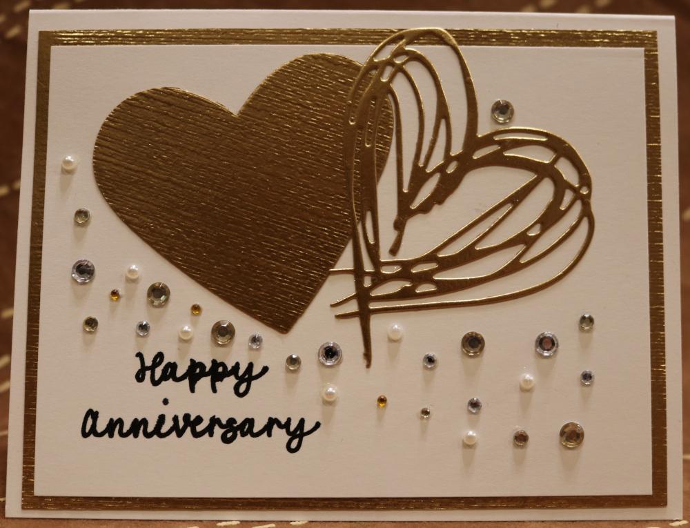 White, Shiny Gold Papers - Subtle Embossing Folder - Double Hearts with asst rhinestones and pearls