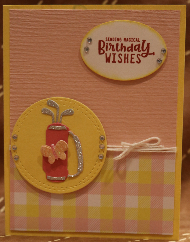 Yellow, Pink, White and Plaid Papers - Pink Golf bag with clubs