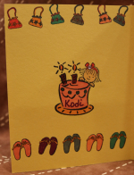 Opposite Page - Purses across top, shoes across bottom, Birthday cake with 2 candles and little girl peeking over cake