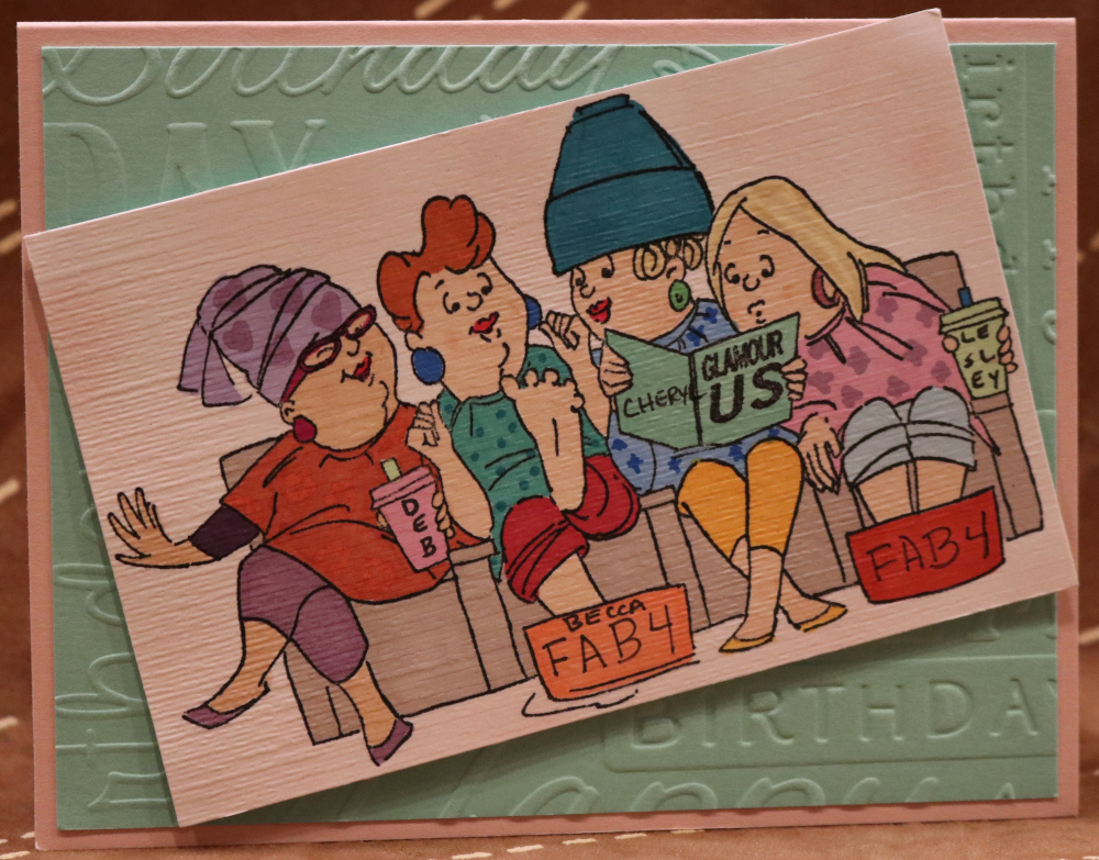 Pink, Mint and White Papers - Happy Birthday and Subtle Embossing Folder - Girlfriends enjoying the spa