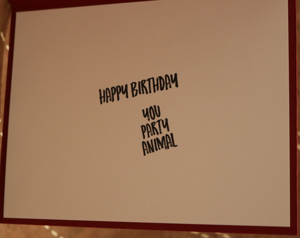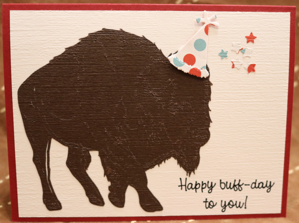 Maroon, Dark Brown, Polka Dots DSP and White Papers - Subtle Embossing Folder - Buffalo with a party hat