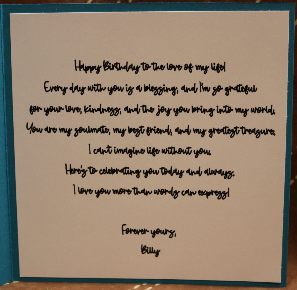Inside Words - Happy Birthday to the love of my life! Every day with you is a blessing, and I’m so grateful for your love, kindness, and the joy you bring into my world. You are my soulmate, my best friend, and my greatest treasure. I can’t imagine life without you. Here’s to celebrating you today and always. I love you more than words can express!