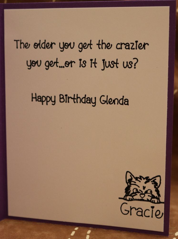 Inside Words - The older you get the crazier you get...or is it just us? Happy Birthday Glenda, Gracie dog in corner