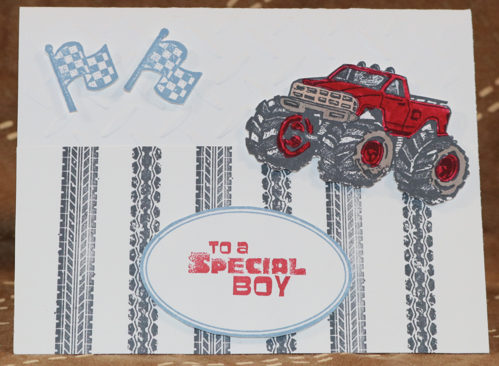 White Paper - Diamond Plate Embossing Folder - Tire Tracks, Monster Truck and Flags