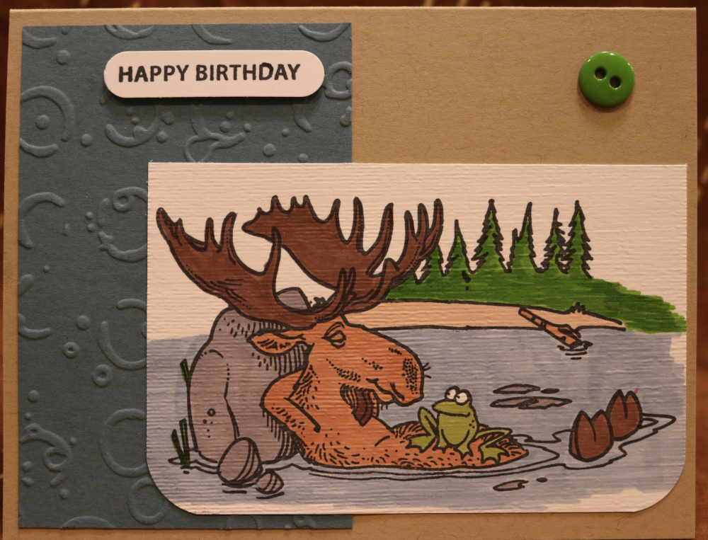 Beige, Blue, White Papers - Splattered Circle and Subtle Embossing Folder - Moose Lounging in water with Frog